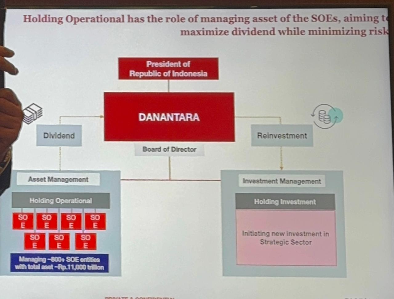 Menurut Dony, langkah ini tidak lain adalah upaya dari Danantara untuk meningkatkan kualitas dari perusahaan-perusahaan BUMN, khususnya yang non-Tbk. Lebih jauh ia berharap agar perusahaan-perusahaan BUMN tersebut dapat menunjukkan kinerja optimal, termasuk peningkatan kontribusi melalui dividen.