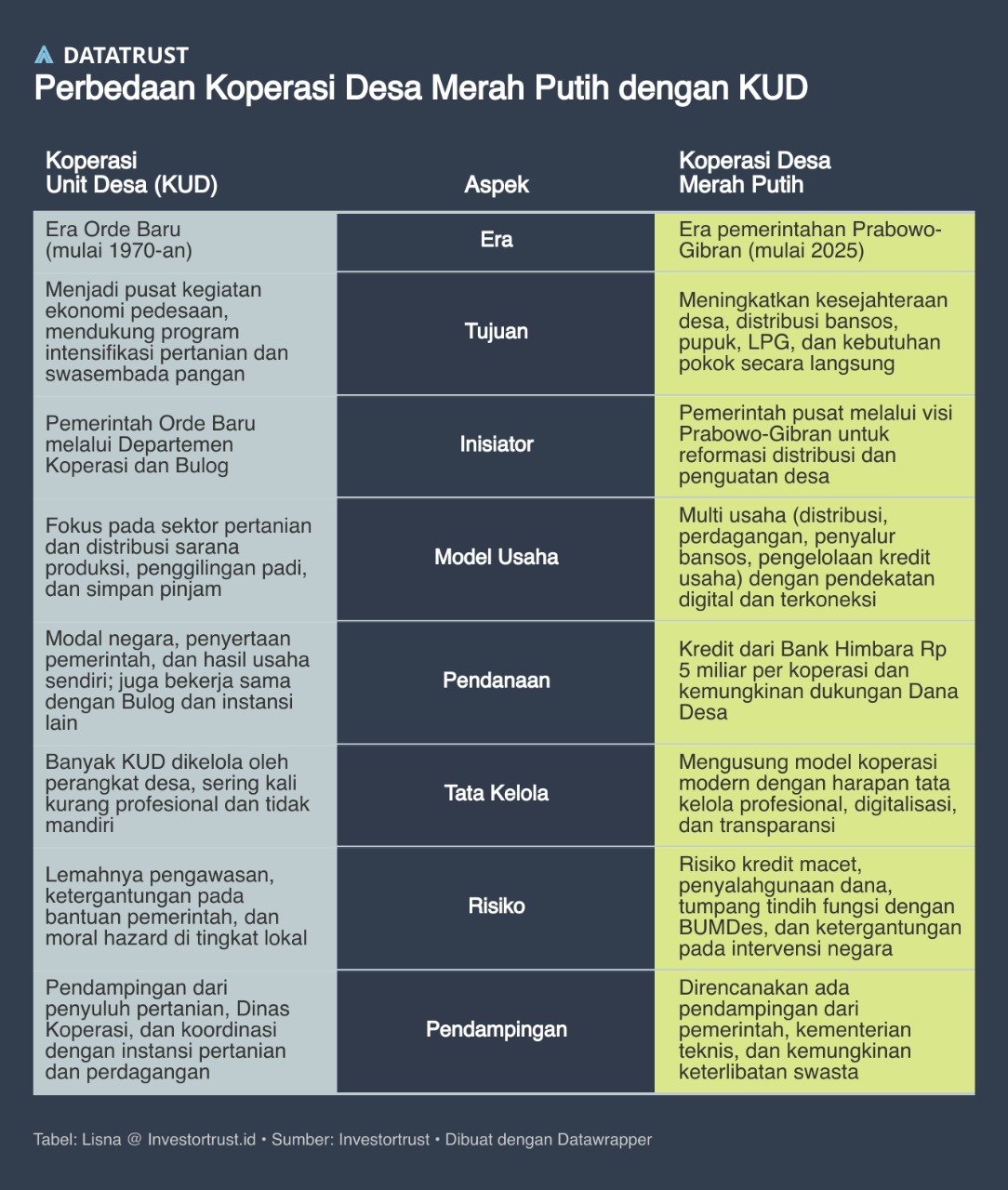 JAKARTA, Investortrust.id - Koperasi Desa Merah-Putih membawa harapan baru bagi rakyat Indonesia untuk masa depan yang lebih sejahtera. Tidak seperti Koperasi Unit Desa (KUD) di era Orde Baru, koperasi rancangan pemerintahan Presiden Prabowo Subianto ini lebih modern, inklusif, dan terintegrasi dalam pembangunan ekonomi rakyat. Mulai dibentuk Maret 2025, 80.000 Koperasi Merah Putih ditargetkan selesai akhir Juni 2025 dan beroperasi penuh 28 Oktober 2025.