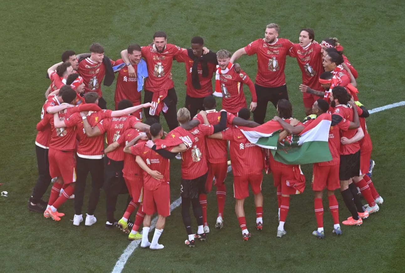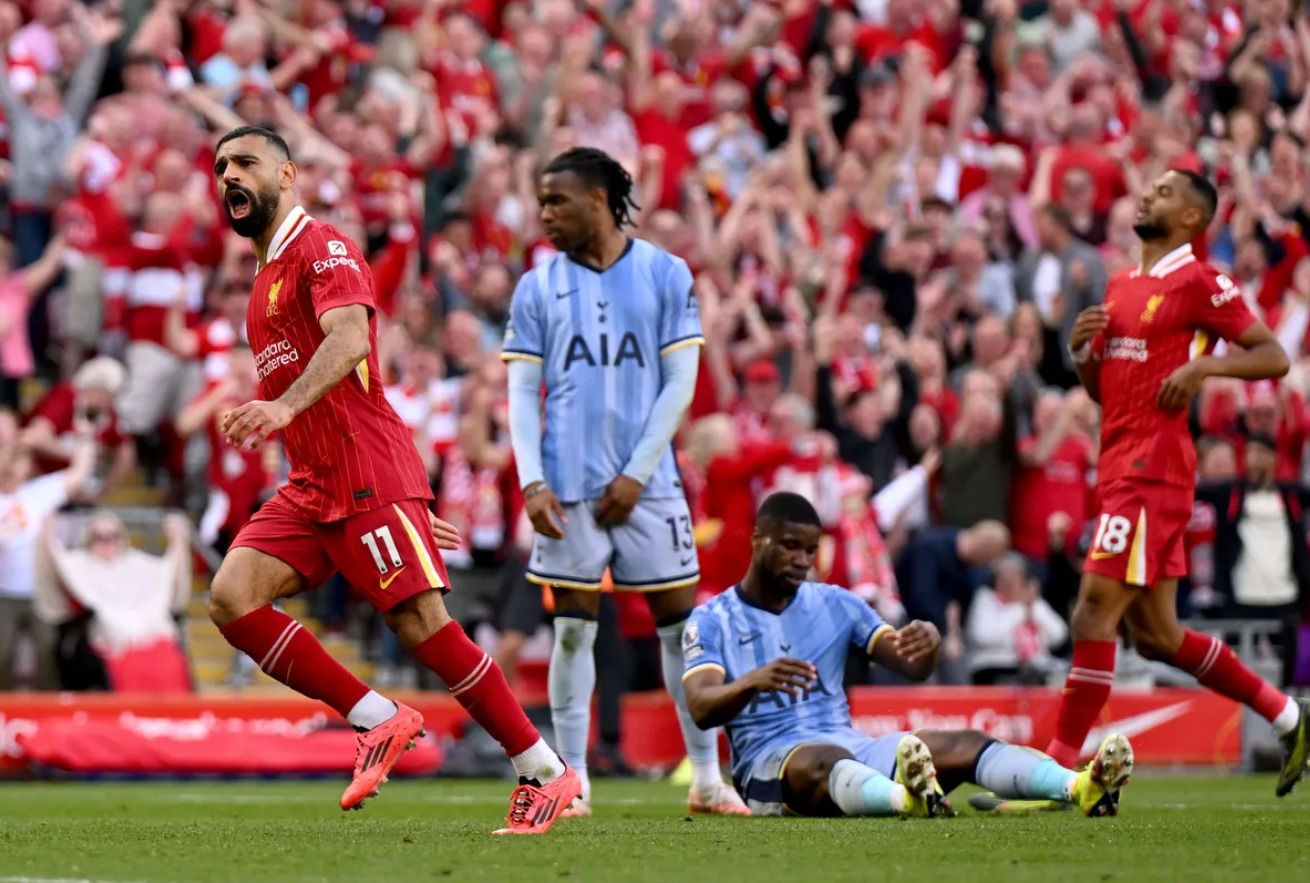 Liverpool memastikan gelar Liga Premier setelah mengalahkan Totenham Hotspur 5-1 di Anfield, Minggu (27/4/2025) malam WIB. Dominic Solanke sempat mencetak gol pada menit ke-12. Tapi, The Reds bangkit dan mengunci tiga poin melalui Luis Diaz (16), Alexis Mac Allister (24), Cody Gakpo (34), Mohamed Salah (63), dan gol bunuh diri Destiny Udogie (69).