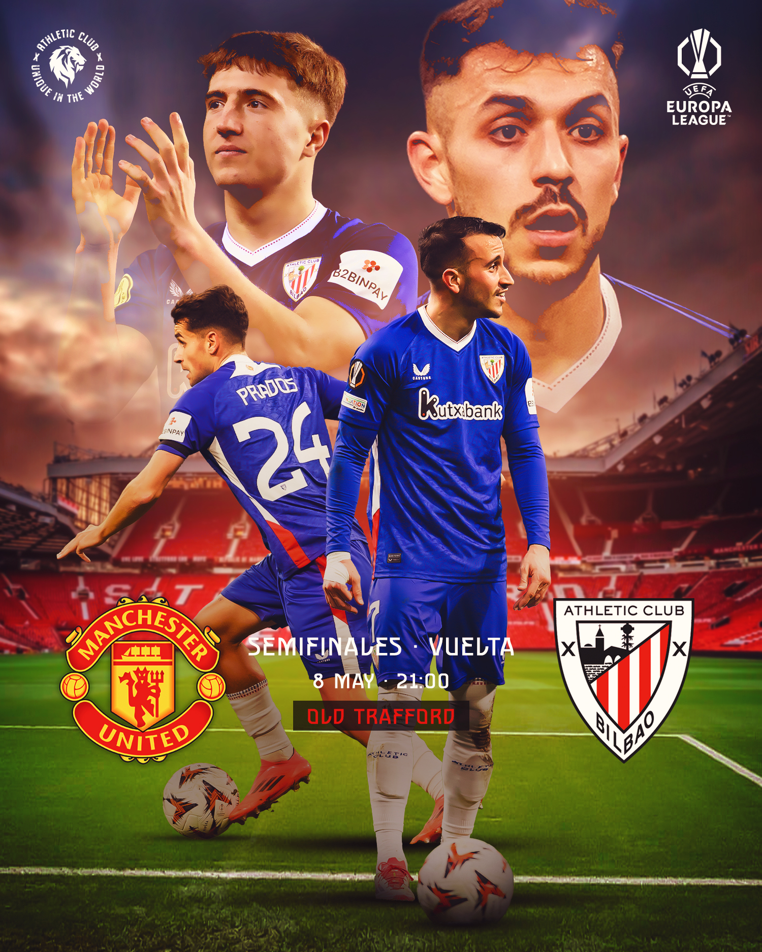 Athletic Bilbao menjalani leg kedua semifinal Liga Europa di kandang Manchester United dalam kondisi yang kurang ideal. Mereka menyerah tiga gol tanpa balas dalam pertandingan pertama di San Mames, minggu lalu. Athletic Bilbao kesulitan karena bermain dengan 10 pemain sejak menit ke-35 setelah Dani Vivian mendapat kartu merah.