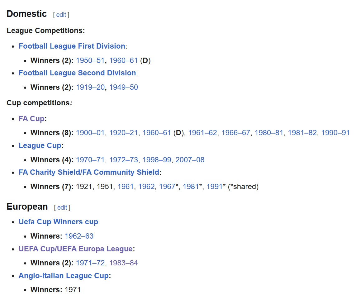 Setelah periode yang panjang itu, Tottenham Hotspur tidak pernah menjuarai kompetisi ini lagi. Bahkan, ketika tampil di final Liga Champions 2018/2029 saat dikalahkan Liverpool di Estadio Wanda Metropolitano.