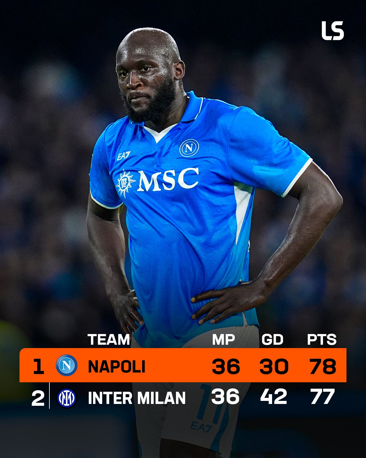 Persaingan memperebutkan gelar juara Serie A semakin ketat setelah Napoli hanya bermain imbang melawan Genoa. Akibatnya, keunggulan selisih tiga poin yang sebelumnya dimiliki kini menipis menjadi tinggal satu poin.