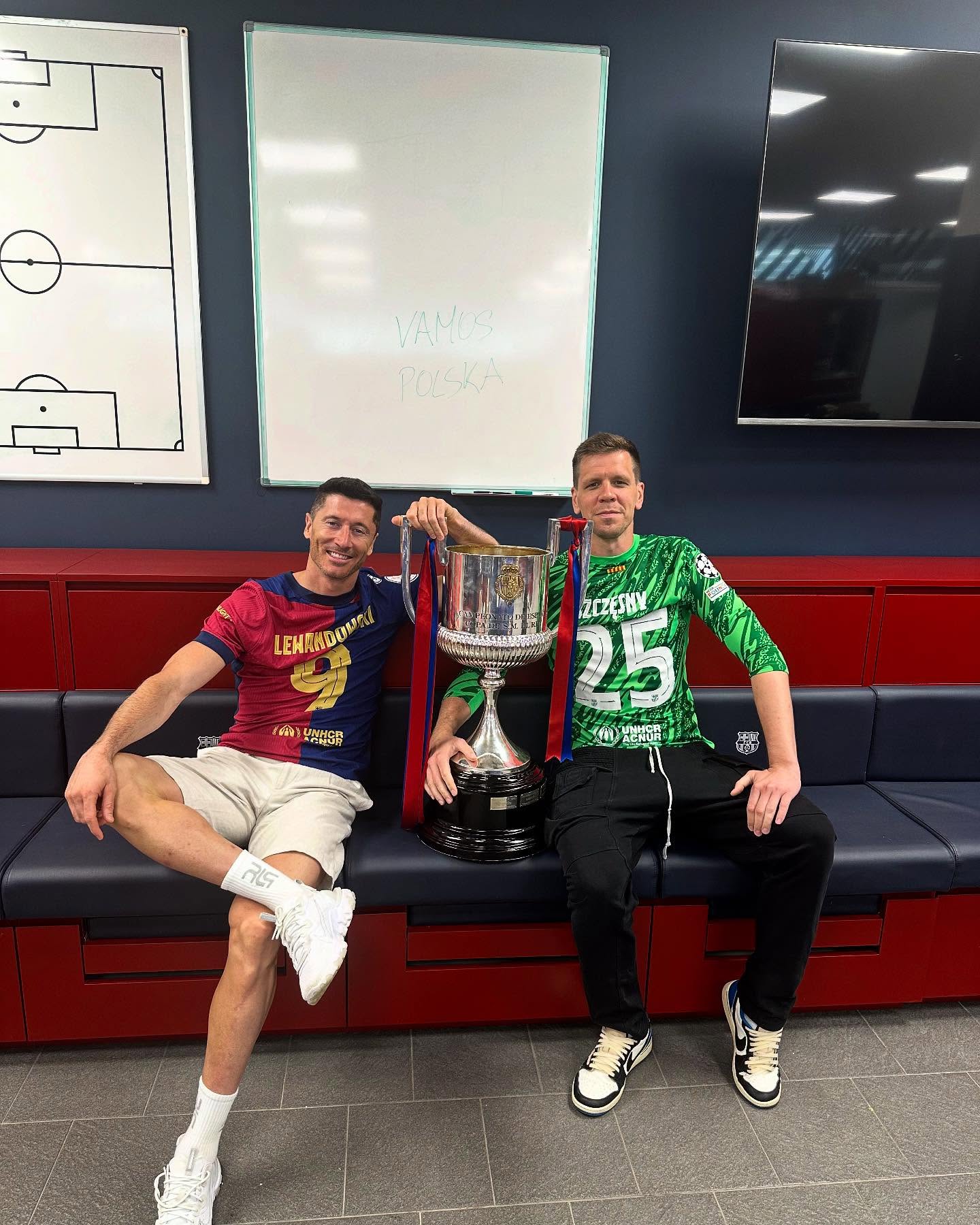 Wojciech Szczesny teared up and took a moment by himself on the pitch to take everything in after Barcelona's ElClásico win. He then shared an emotional moment with his wife, Marina, at midfield.