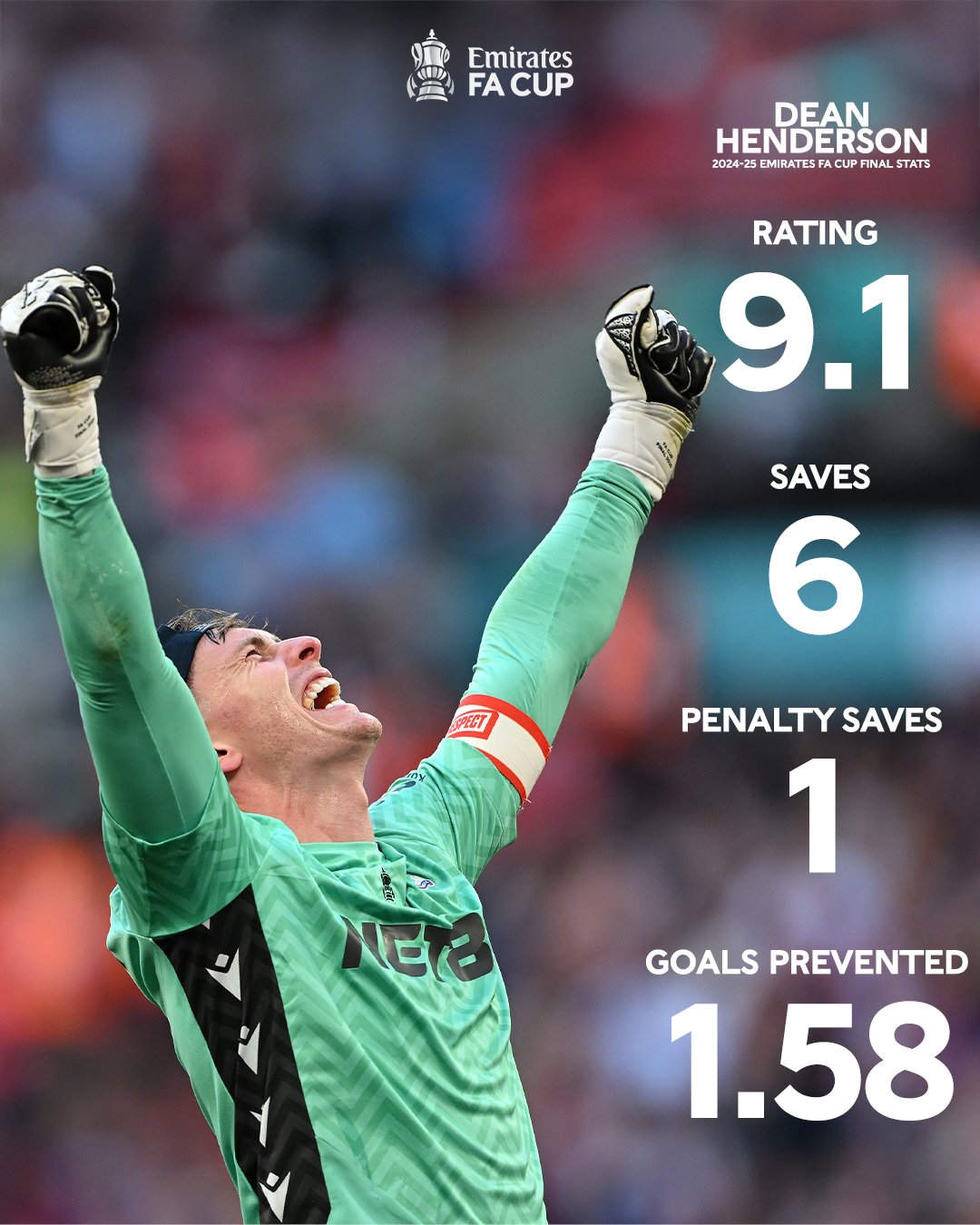 Minutes later, he saves Omar Marmoush’s penalty to keep Crystal Palace 1-0 up in the FA Cup final 😮 pic.twitter.com/YrGPCAUmS9