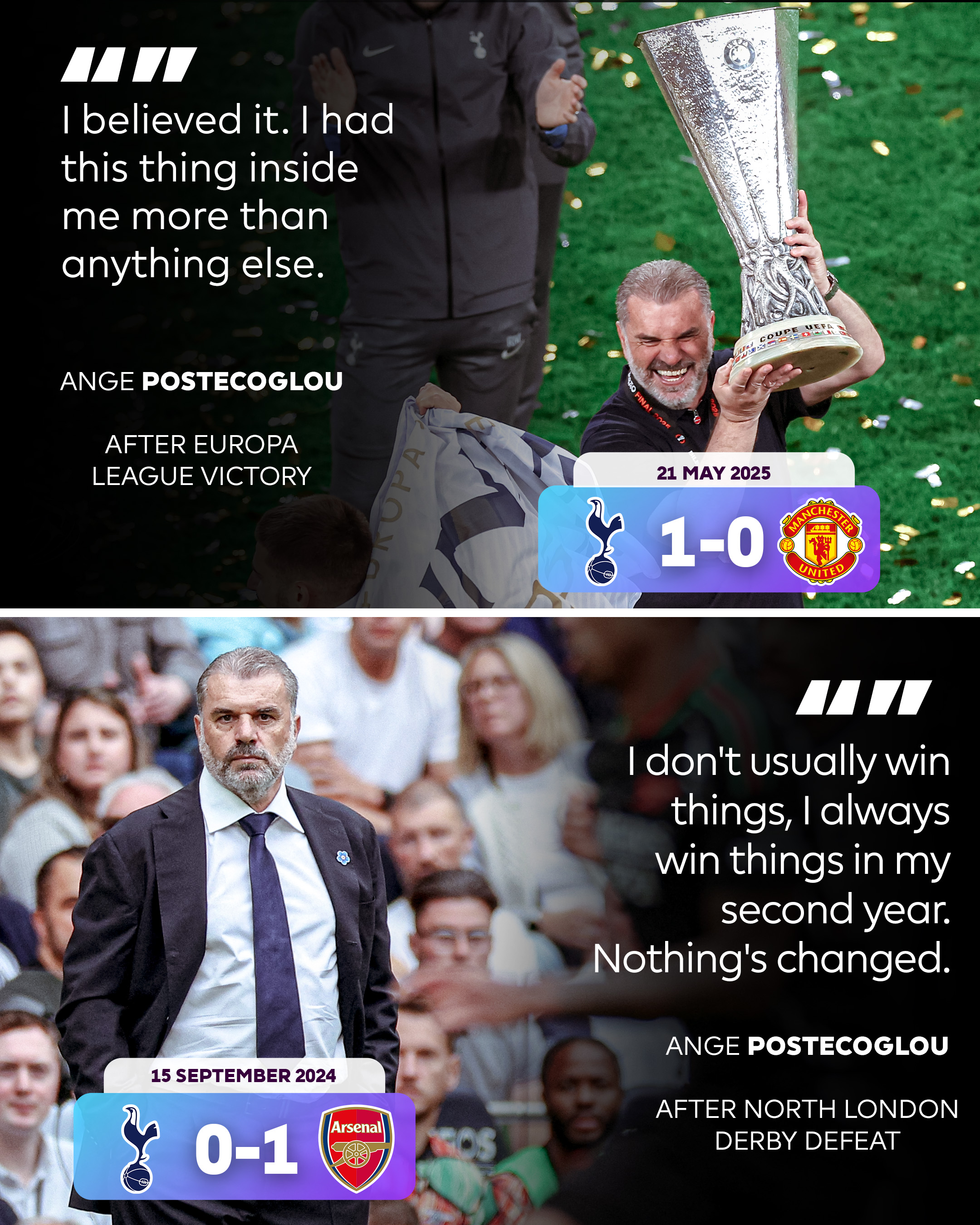 “Orang-orang bisa membicarakan soal 20 kekalahan kami di liga. Tapi, mereka melewatkan inti dari apa yang sedang saya bangun di sini. Menang adalah satu-satunya hal yang bisa mengubah klub ini. Saya bilang kami akan menang di musim kedua, dan saya sungguh percaya itu,” tambah Ange Postecoglou.