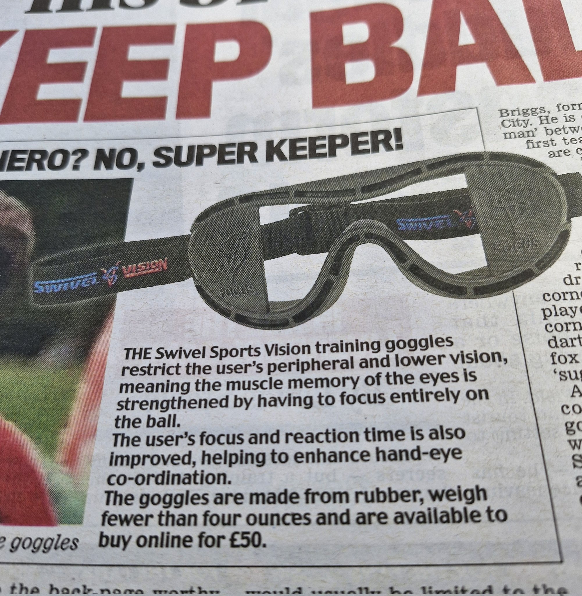 Alat apakah itu? Itu bukan kacamata untuk gaya. Kacamata itu bernama swivel vision. Itu merupakan kacamata pelatihan khusus asal Amerika Serikat. Alat itu dirancang untuk membatasi penglihatan periferal dan memaksa individu mengandalkan pelacakan visual yang lebih fokus atau menggunakan isyarat audio.