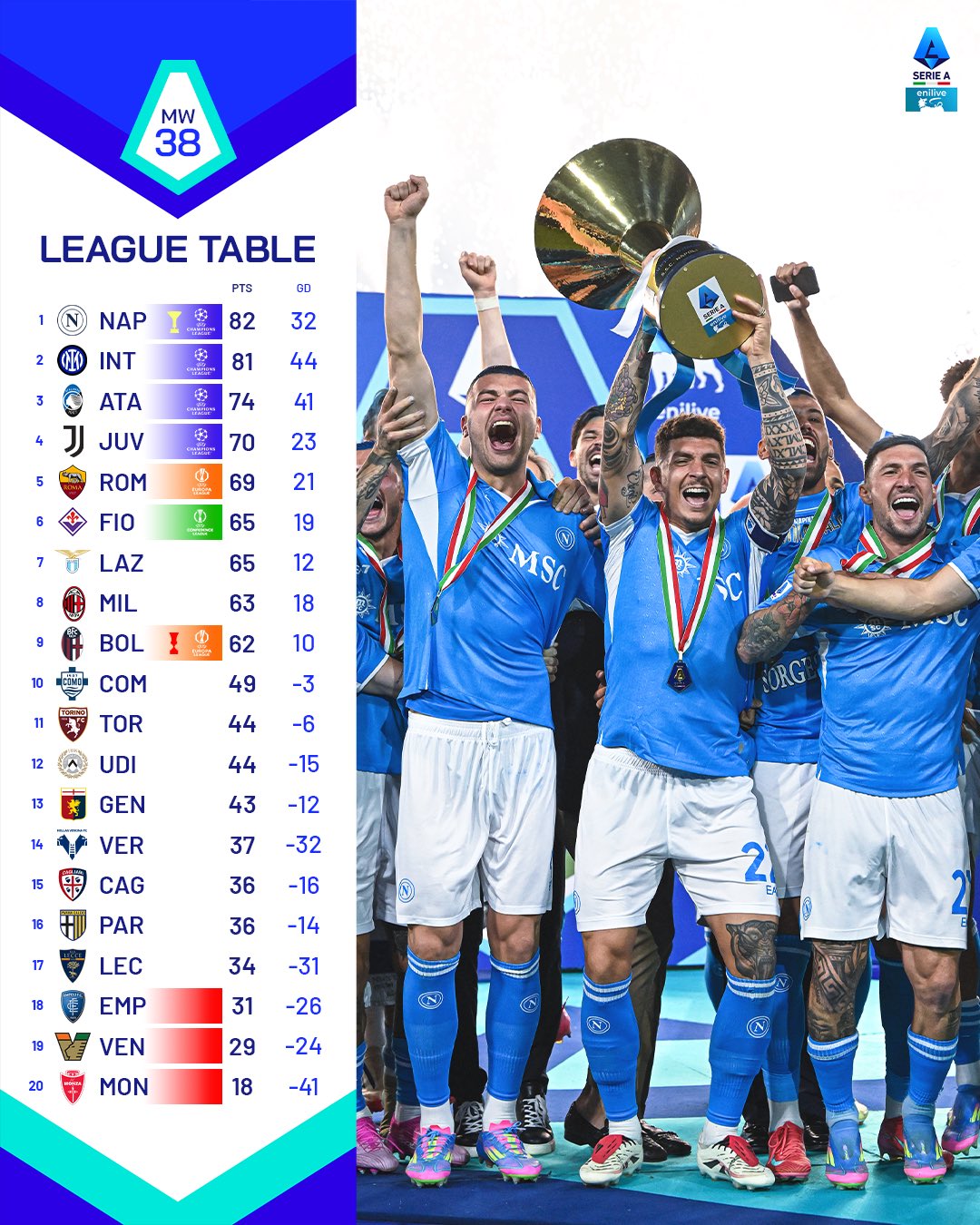 Napoli mengakhiri musim 2024/2025 dengan gelar juara Serie A setelah unggul 1 poin dari sang juara musim 2023/2024 Inter Milan. Ini menjadi gelar keempat I Partenopei dalam sejarah kompetisi sepak bola kasta tertinggi di Italia.