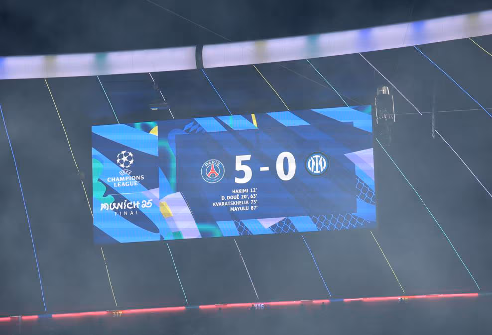 Fakta menunjukkan, skor 5-0 yang dihasilkan PSG ke gawang Inter Milan mencatatkan rekor baru. Ini menjadi margin kemenangan terbesar di pertandingan puncak Liga Champions sejak era Piala Eropa.