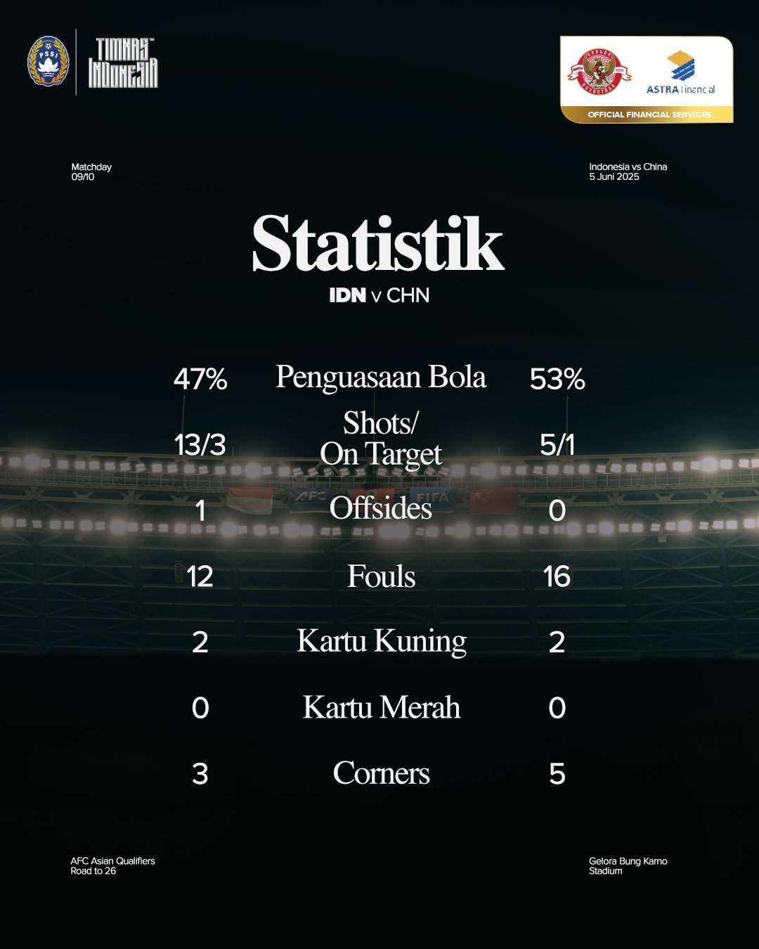 Timnas Indonesia menjamu China di Stadion Utama Gelora Bung Karno (SUGBK), Jakarta, Kamis (5/6/2025) malam WIB. Anak-anak Merah-Putih sukses memetik kemenangan 1-0 berkat gol semata wayang Ole Romeny lewat titik penalti.