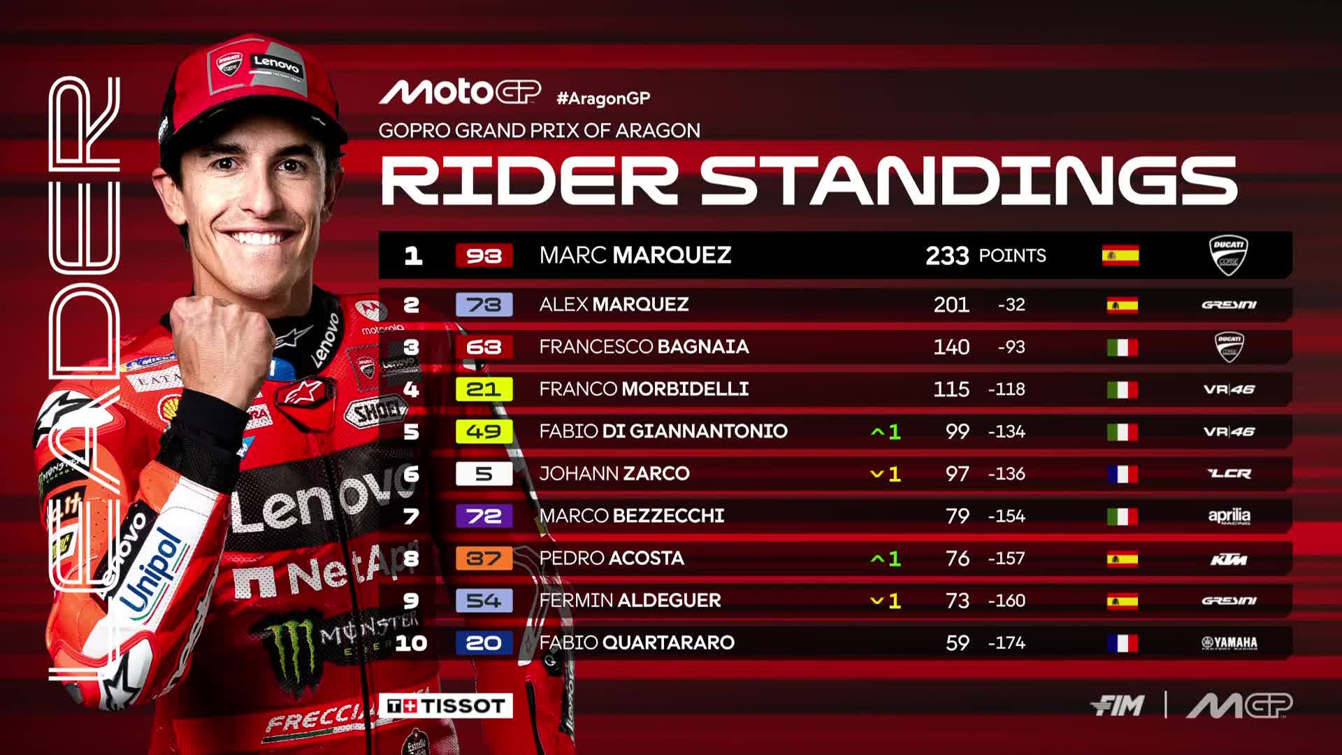 Sukses pada dua hari awal dilanjutkan Marc Marquez pada hari terakhir. Berlomba dari baris terdepan di main race MotoGP Aragon, pembalap Ducati itu melesat sejak start. Mantan penunggang motor Honda tidak bisa dilawan rival-rival lainnya.
