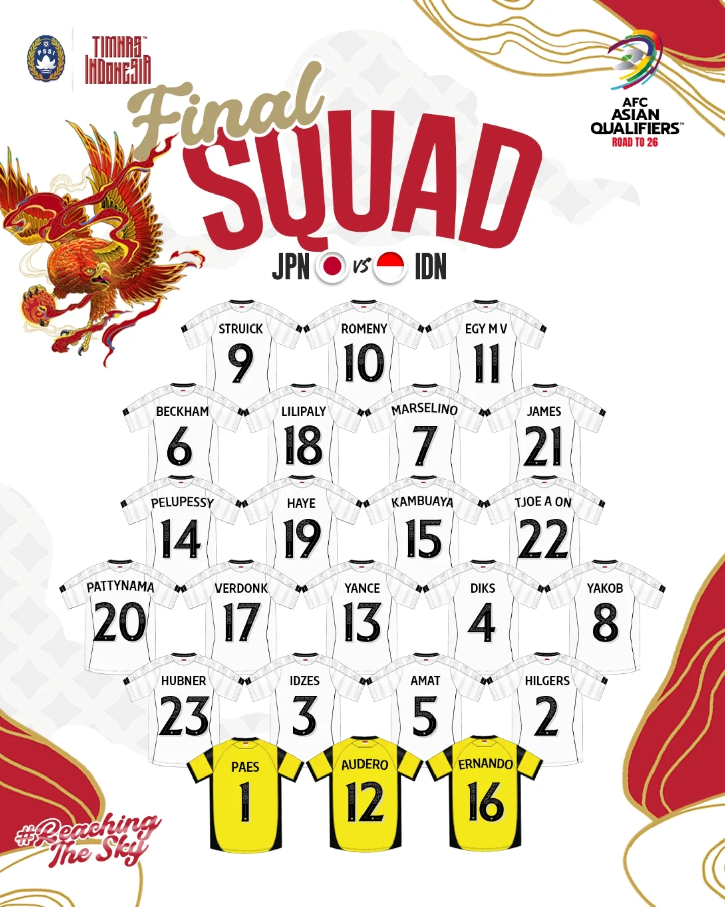 Timnas Indonesia menantang Jepang pada pertandingan terakhir putaran ketiga Kualifikasi Piala Dunia 2026 zona Asia Grup C. Ini adalah pertandingan formalitas, baik untuk pasukan Garuda maupun Samurai Blue.