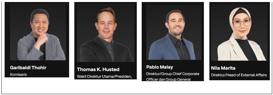 Keterbukaan informasi Bursa Efek Indonesia (BEI) kemarin, Jumat (2/5/2025), diumumkan pengunduran diri sejumlah Direksi dan seorang Komisaris. Tiga direktur, yaitu Thomas Husted selaku Wakil Presiden Direktur, Nila Marita selaku Direktur dan Head of External Affairs, Pablo Malay selaku Chief Corporate Officer mengajukan surat pengunduran diri dari jabatannya. Sedangkan Garibaldi Thohir mengundurkan diri dari posisinya sebagai komisaris.
