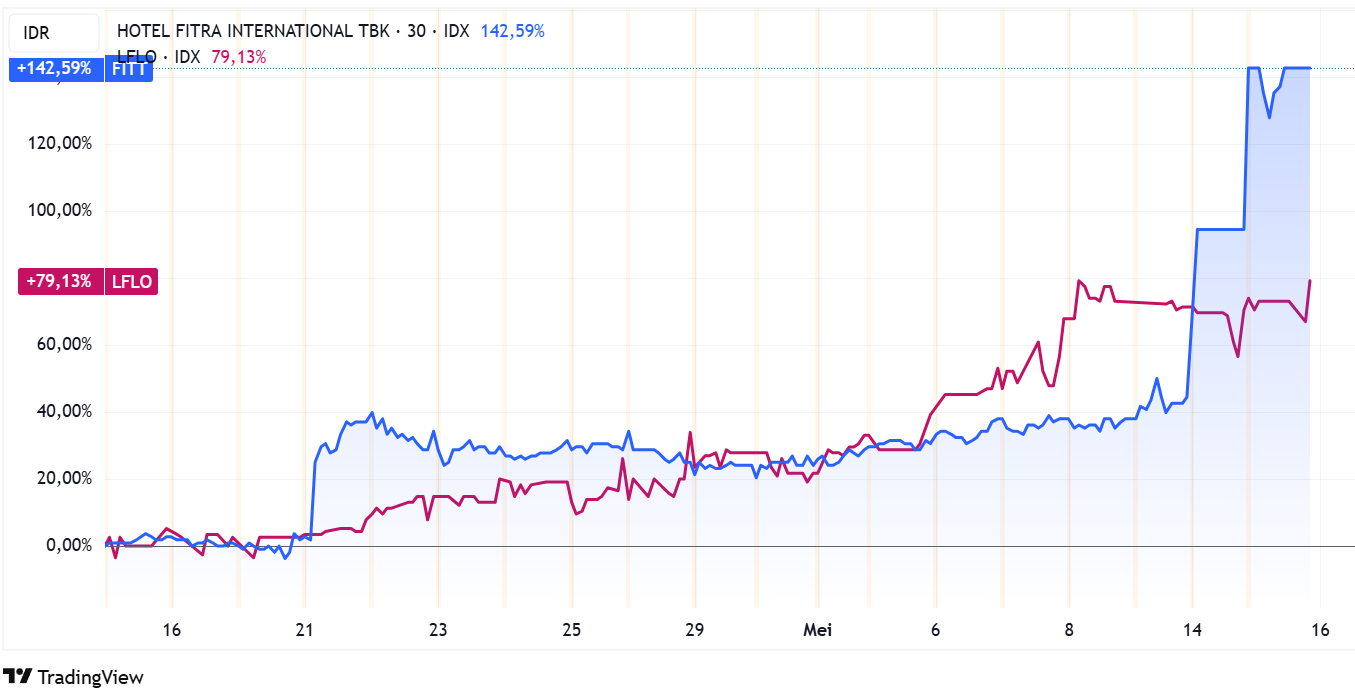 “Suspensi atas perdagangan saham FITT di pasar regular dan pasar tunai dibuka kembali mulai sesi I, 19 Mei 2025. Sedangkan saham LFLO dihentikan sementara mulai sesi I hari ini dalam rangka cooling downs setelah terjadi kenaikan harga signifikan,” tulis pengumuman resmi BEI, hari ini.