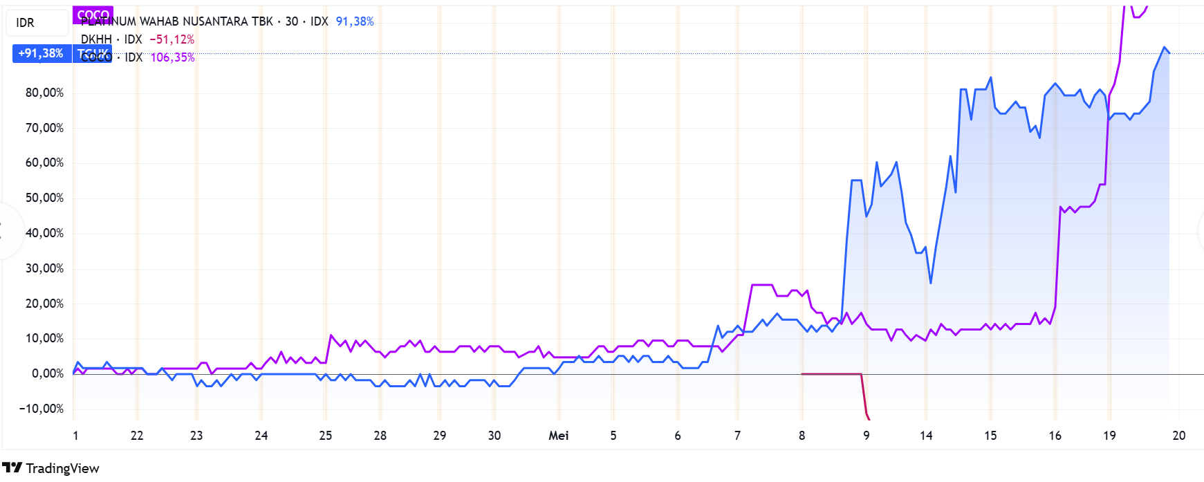 Manajemen BEI dalam penjelasan resminya hari ini menyebutkan bahwa suspensi saham COCO dipicu atas kenaikan harga kumulatif yang signifikan dalam beberapa pekan terakhir, sehingga diperlukan cooling down guna melindungi investor. Berdasarkan data, harga saham COCO telah melesat lebih dari 170% menjadi Rp 175.