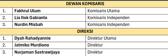 Selain itu, RUPS mengangkat dua komisaris independent baru Lie Itok Gabianto dan Nurdin Misbah mengggantikan Aryanto Sutadi dan Budiyono. Adapun Fakhrul Ulum tetap menjabat sebagai komisaris utama.