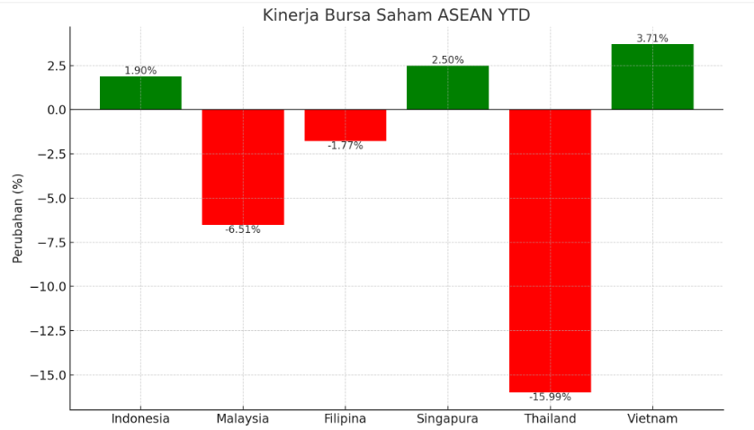 Kinerja kuat IHSG hingga akhir kemarin tersebut, jauh berbeda dibandingkan dengan posisi 9 April 2025 saat IHSG turun sebanyak 15,71% menjadi 5.967. Dengan pencapaian level 7.214, maka perbaikan indeks paling cepat di Asean.