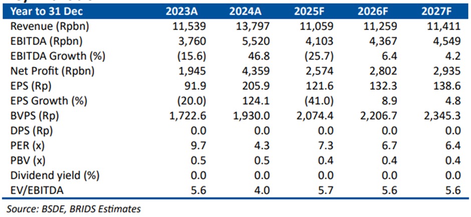 BRI Danareksa Sekuritas juga memangkas turun target pendapatan BSDE dari semula Rp 14,77 triliun menjadi Rp 11,05 triliun. Begitu juga dengan estimasi laba bersih tahun 2025 direvisi turun dari semula Rp 3,92 triliun menjadi Rp 2,57 triliun, dibandingkan dengan realisasi tahun 2024 sebanyak Rp 4,35 triliun.