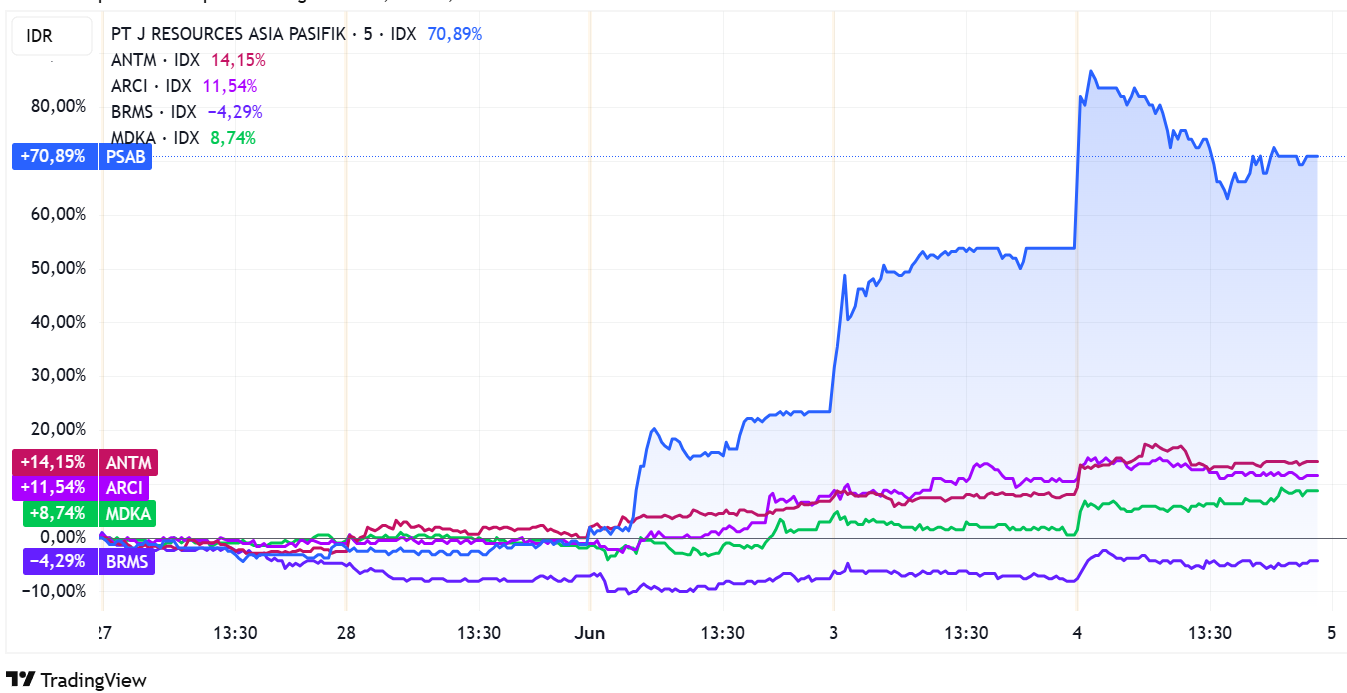 JAKARTA, investortrust.id - Kenaikan tajam saham-saham emas, seperti ANTM, PSAB, BRMS, MDKA, dan ARCI, belakangan ini menjadi cerminan kuat dari respons dinamis pasar terhadap perpaduan antara sentimen global yang positif dan performa fundamental yang menjanjikan. Penguatan tersebut bakal berlanjut?