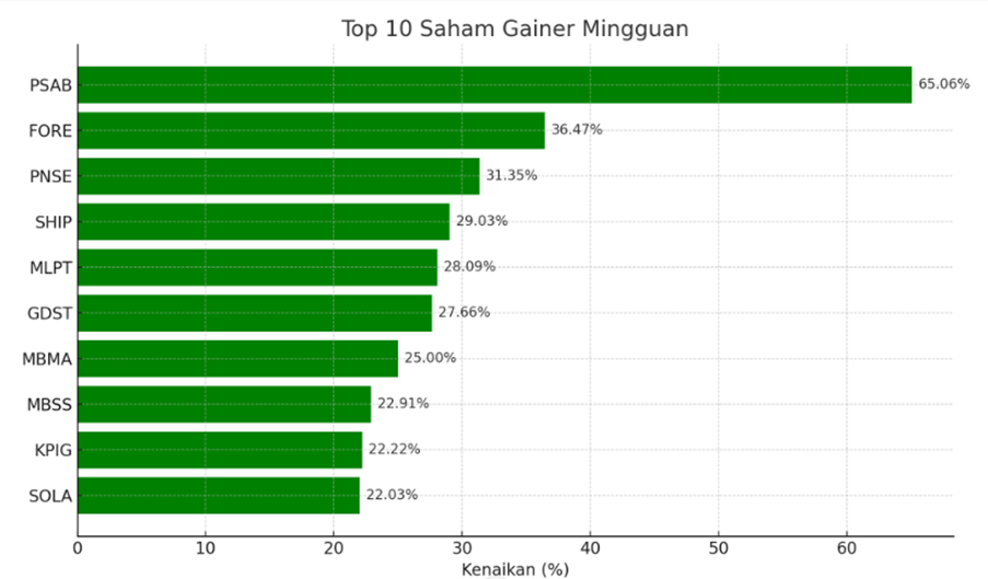 Meski IHSG Sepekan Turun, 10 Saham Dipimpin PSAB Naik Signifikan