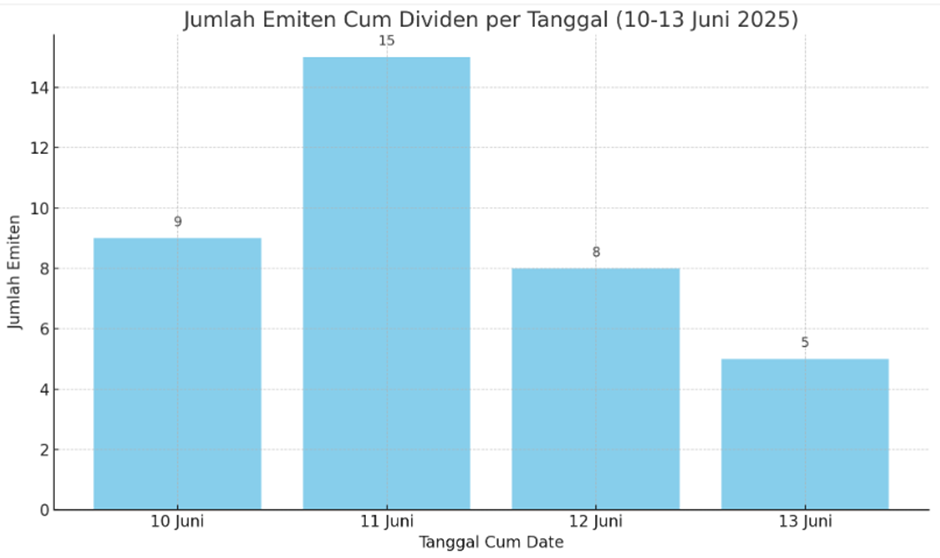 JAKARTA, investortrust.id – Sebanyak 37 emiten akan menggelar cum dividen pekan ini atau sepanjang 10-13 Juni 2025. Nilai dividen yang ditawarkan beragam dan PT Telkom Indonesia Tbk (TLKM) akan menjadi emiten dengan nilai dividen terbesar.
