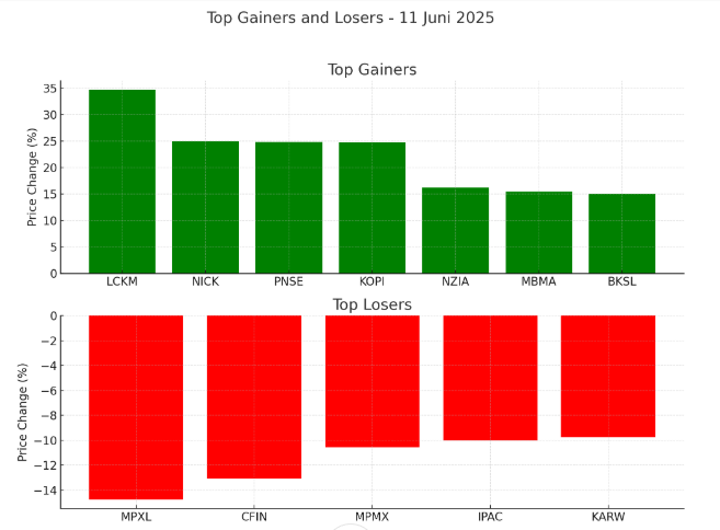 Meski IHSG turun, empat saham berhasil cetak penguatan hingga auto reject atas (ARA) PT LCK Global Kedaton Tbk (LCKM) naik 34,72% menjadi Rp 260, PT Charnic Capital Tbk (NICK) naik 25% menjadi Rp 1.000, PT Pudjiadi & Sons Tbk (PNSE) naik 24,79% menjadi Rp 755, dan PT Mitra Energi Persada Tbk (KOPI) naik 24,77% menjadi Rp 680.