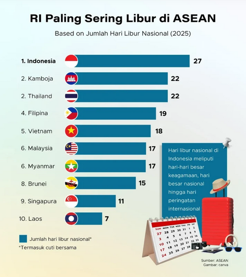 Indonesia Negara dengan Hari Libur Terbanyak di ASEAN, Apa Kabar Produktivitas?